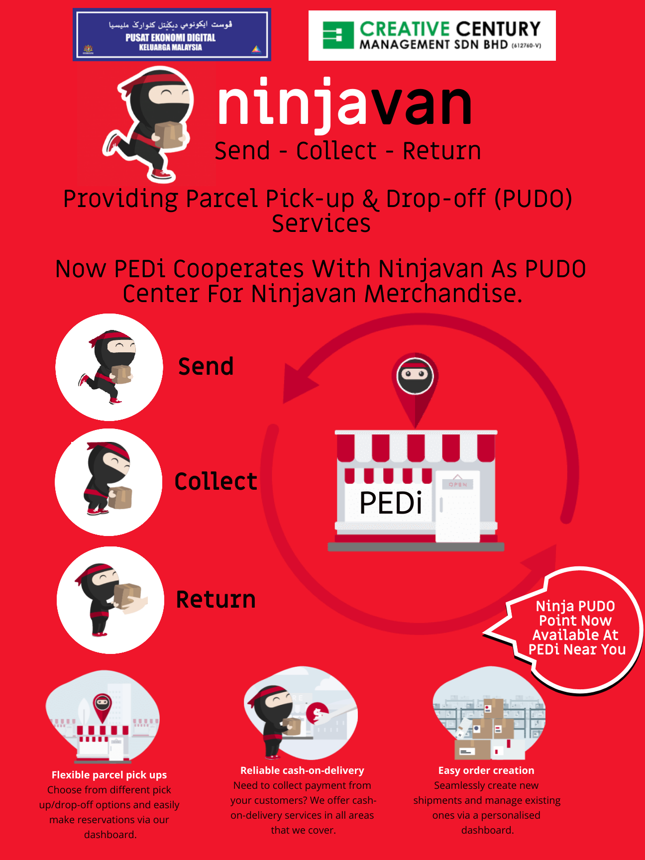 PENGUMUMAN KERJASAMA PEDi DAN NINJA VAN SEBAGAI PERKHIDMATAN PUDO